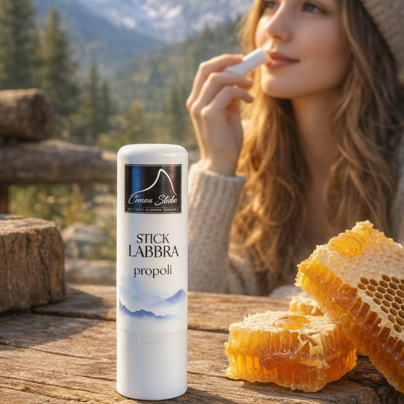 Proteggi il tuo sorriso anche nelle condizioni più difficili con lo Stick Labbra alla Propoli firmato Cimon Stube. Nato dalla tradizione della nostra Bottega Storica Trentina, questo balsamo labbra è il compagno ideale per chi ama la vita all'aria aperta, dalle vette innevate alle passeggiate autunnali.
